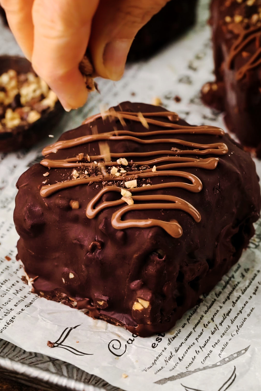 - Make it fancy. A drizzle of milk chocolate, a sprinkle of chopped almonds, and a few crushed chocolate-covered espresso beans take these from homemade to heroic. Don’t skip the final flair.